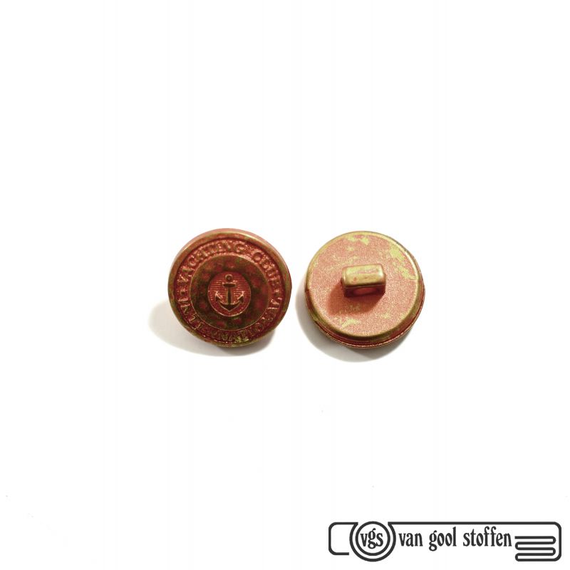 Knoop 15mm ondersteker goud rose / brique met anker 1.5 cm groot