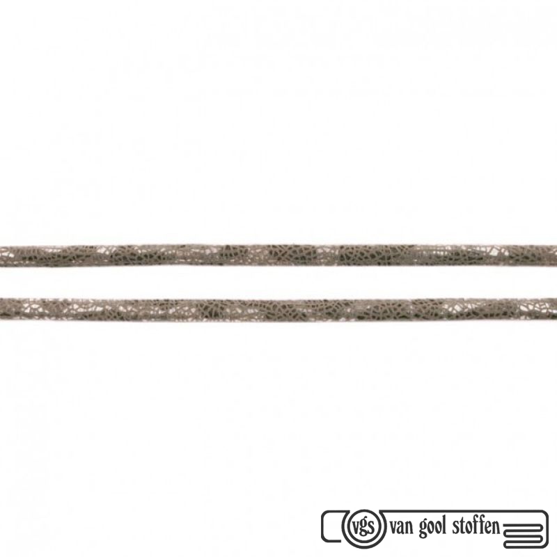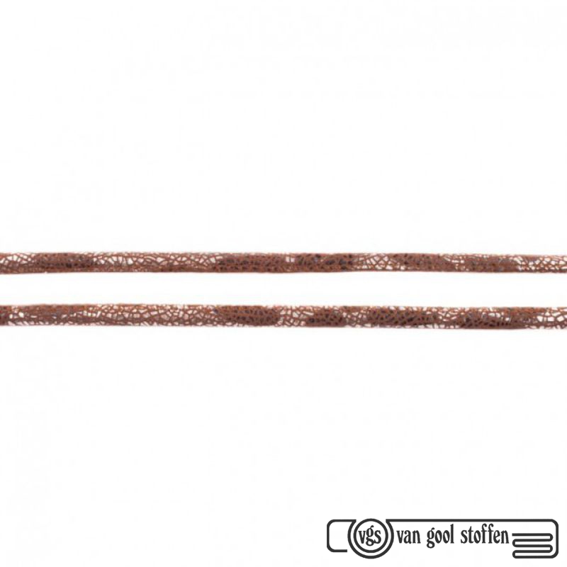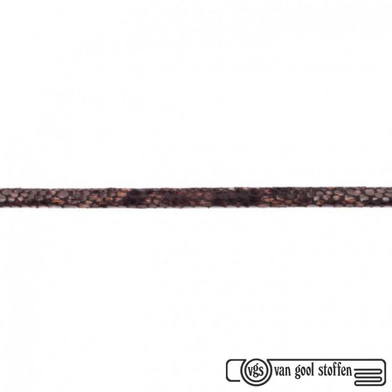 Luxe leder koord slangen print 7mm donker bruin zilver