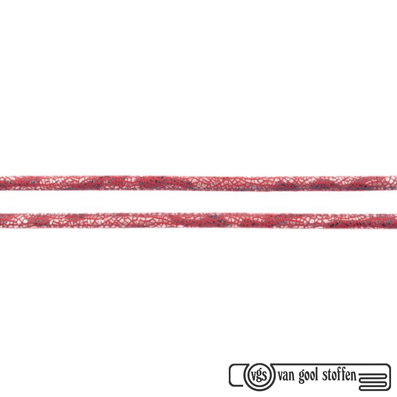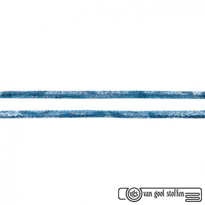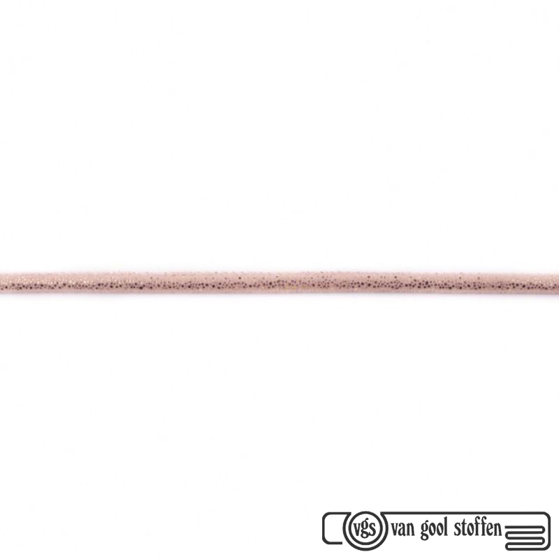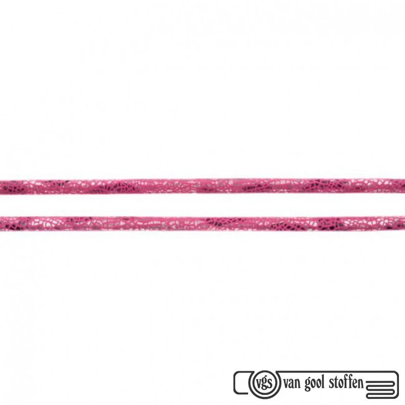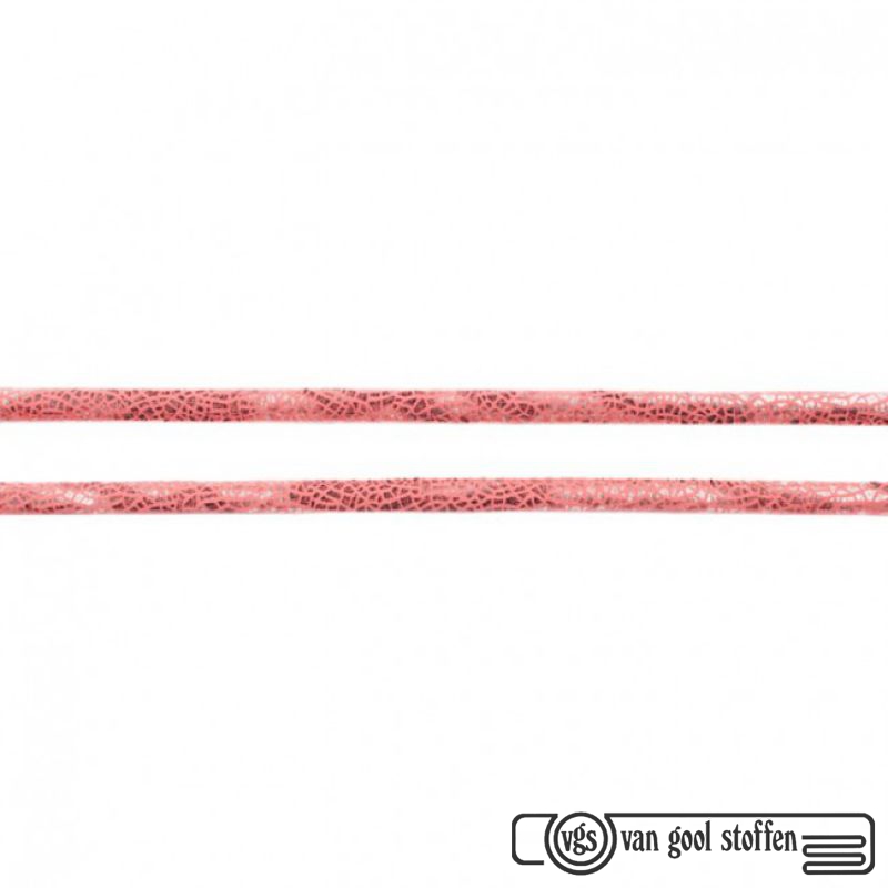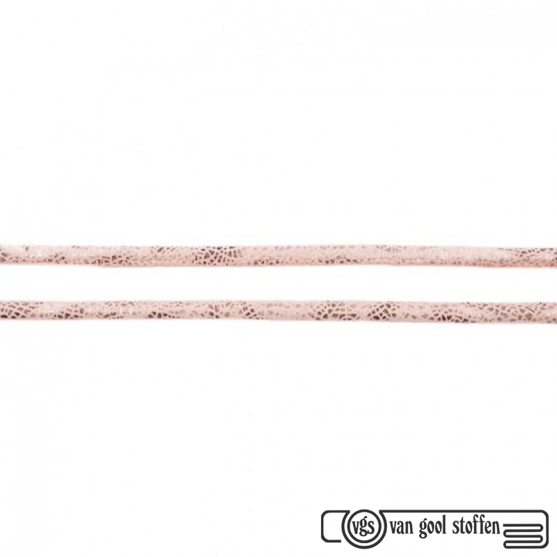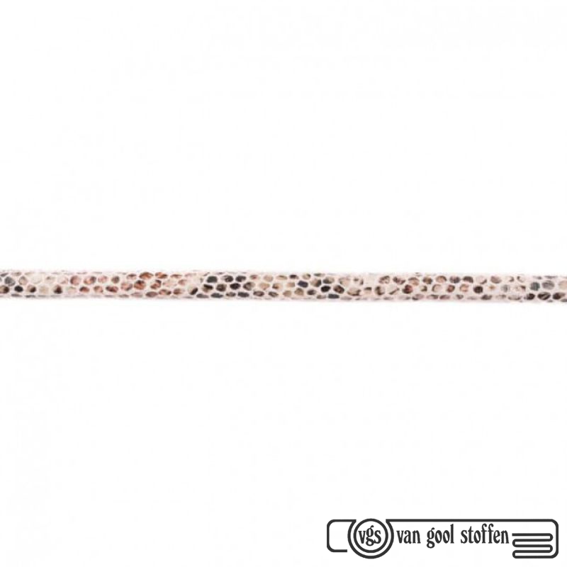 Luxe leder koord slangen print 7mm poeder rose zilver