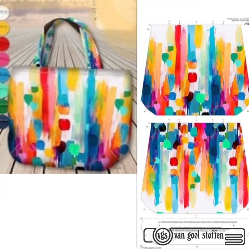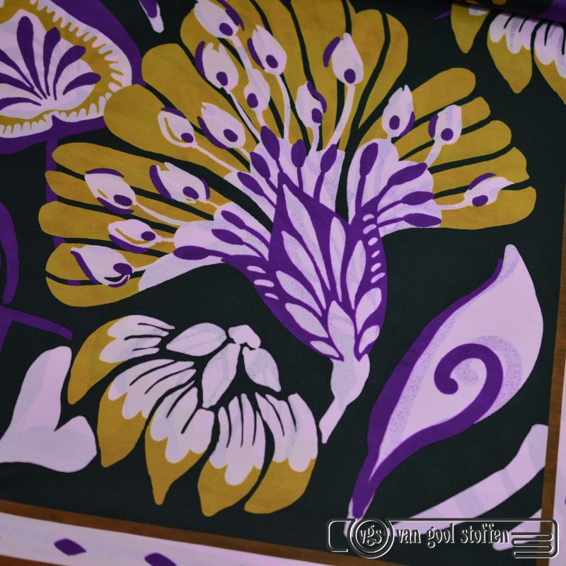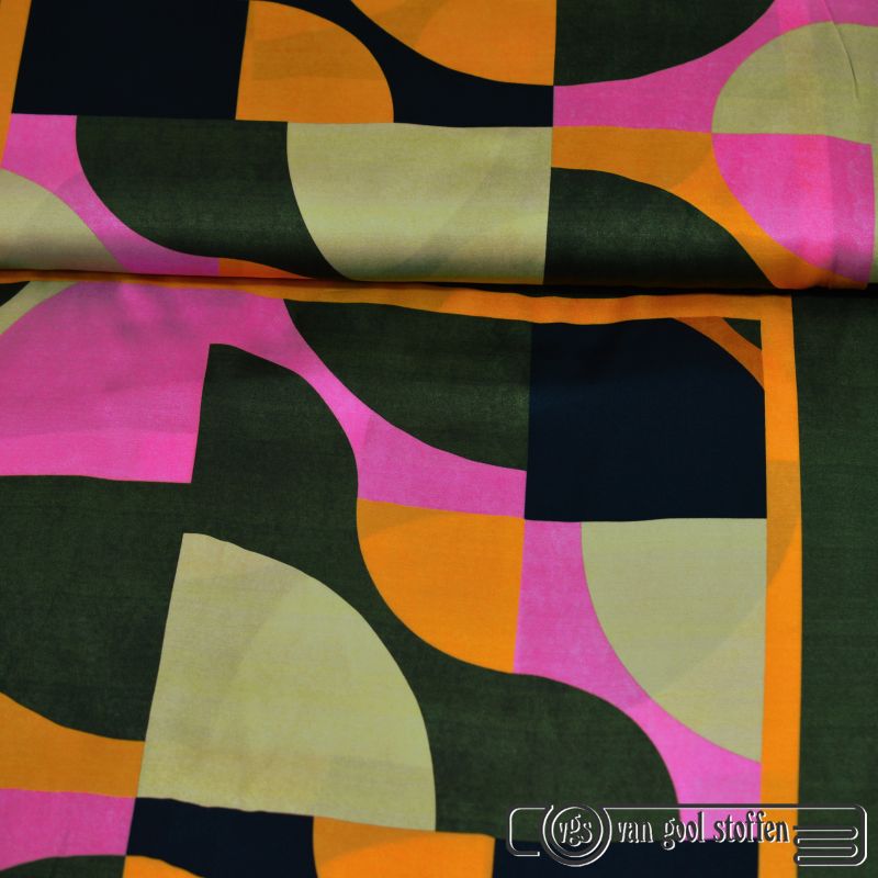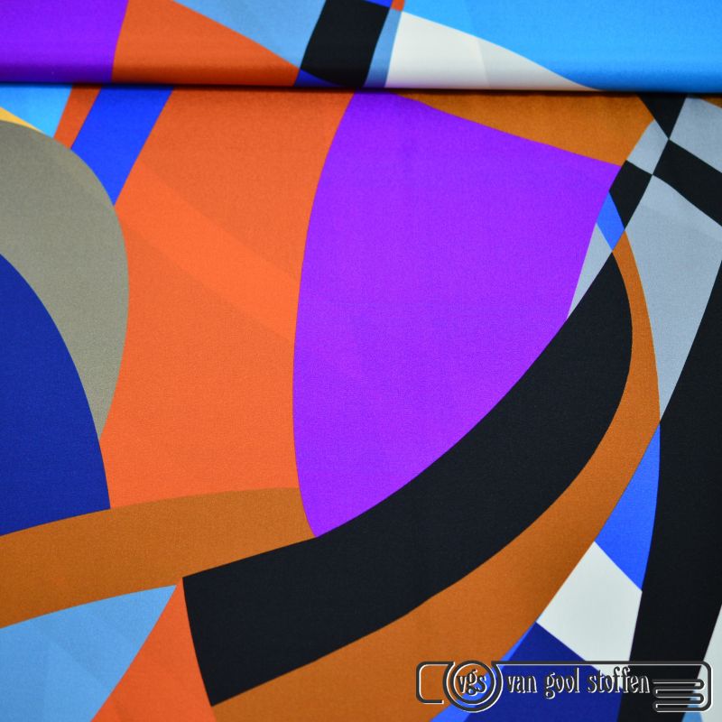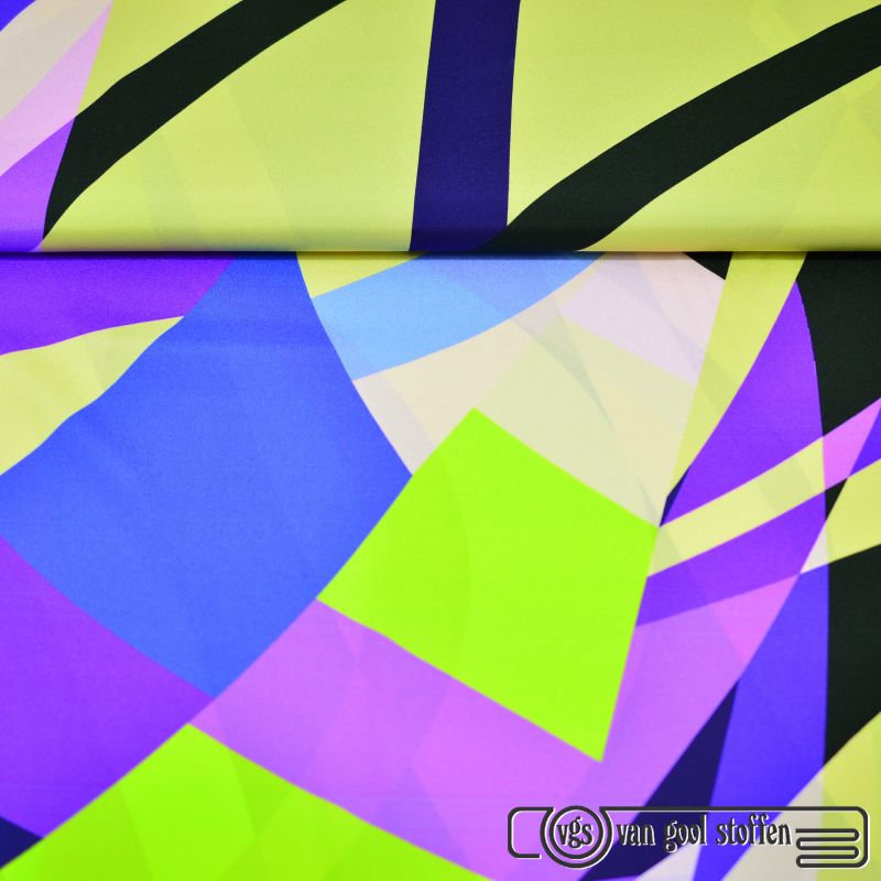 Panel 1.40 zijde stretch abstract print italiaans design lime paars 1.40mtr x1.40 mtr
