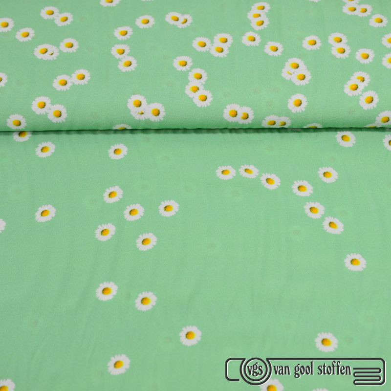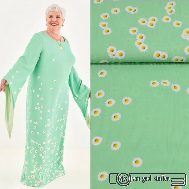 Coupon 150x137 viscose crepe margriet bloementjes mint 1.50mtr x 1.37mtr #knipmode Ala