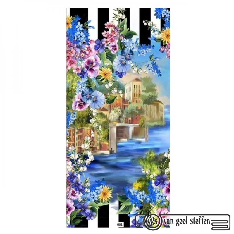 Panel haute couture italiaanse designer panel streep met bloemen katoen stretch1.30mtr x