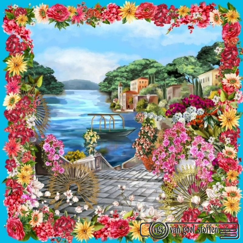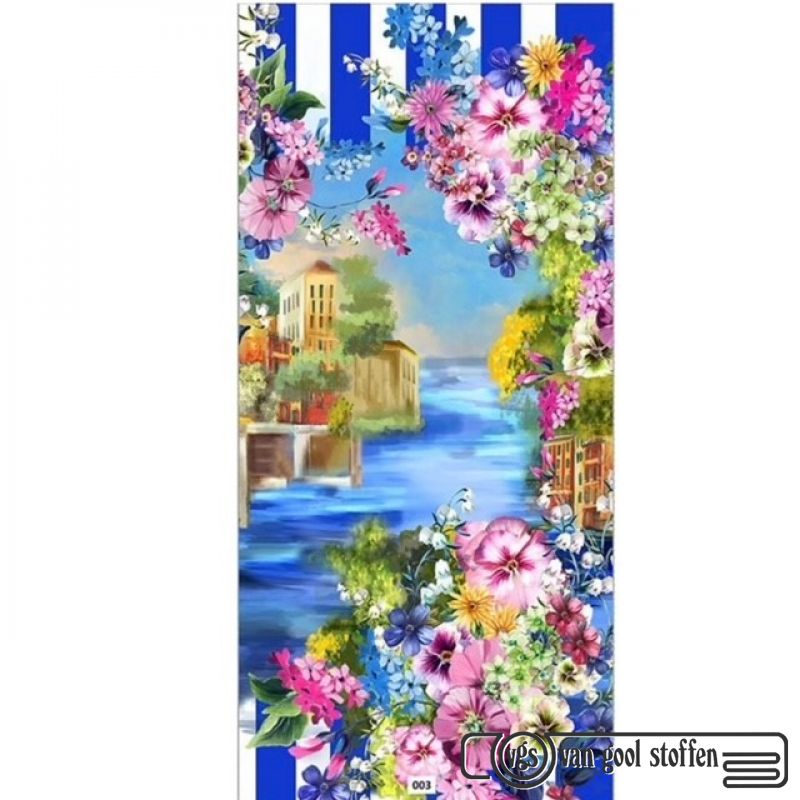 Panel haute couture italiaanse designer panel streep blauw met bloemen katoen
