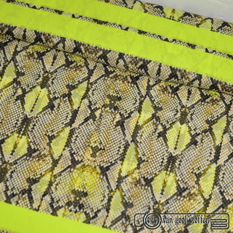 Panel katoen voile slangen print met neon geel 0.85mtr x1.40 mtr
