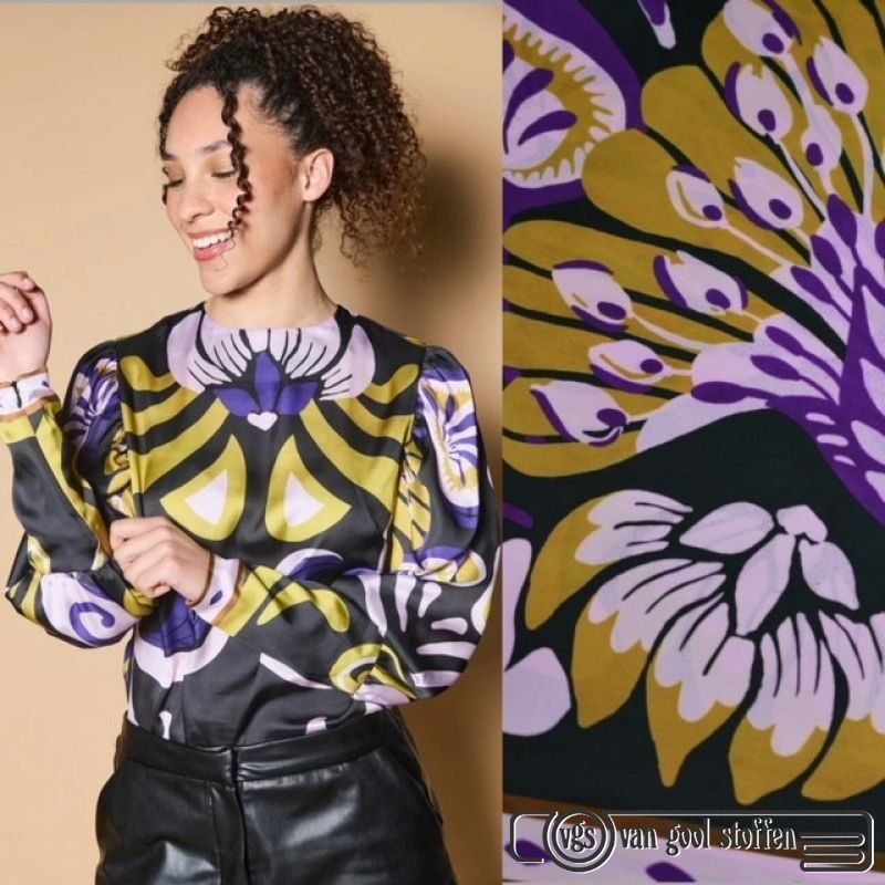 Panel satijn micro met bloemen 1.15x1.45 # A la ville collection / Knipmode oktober