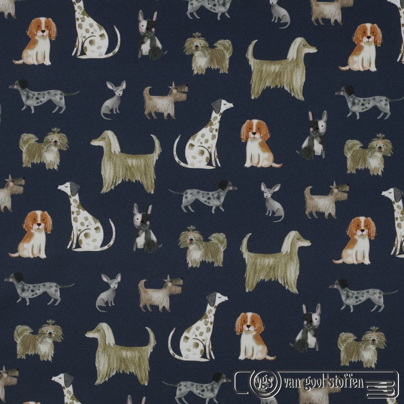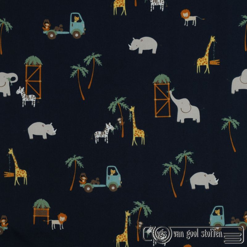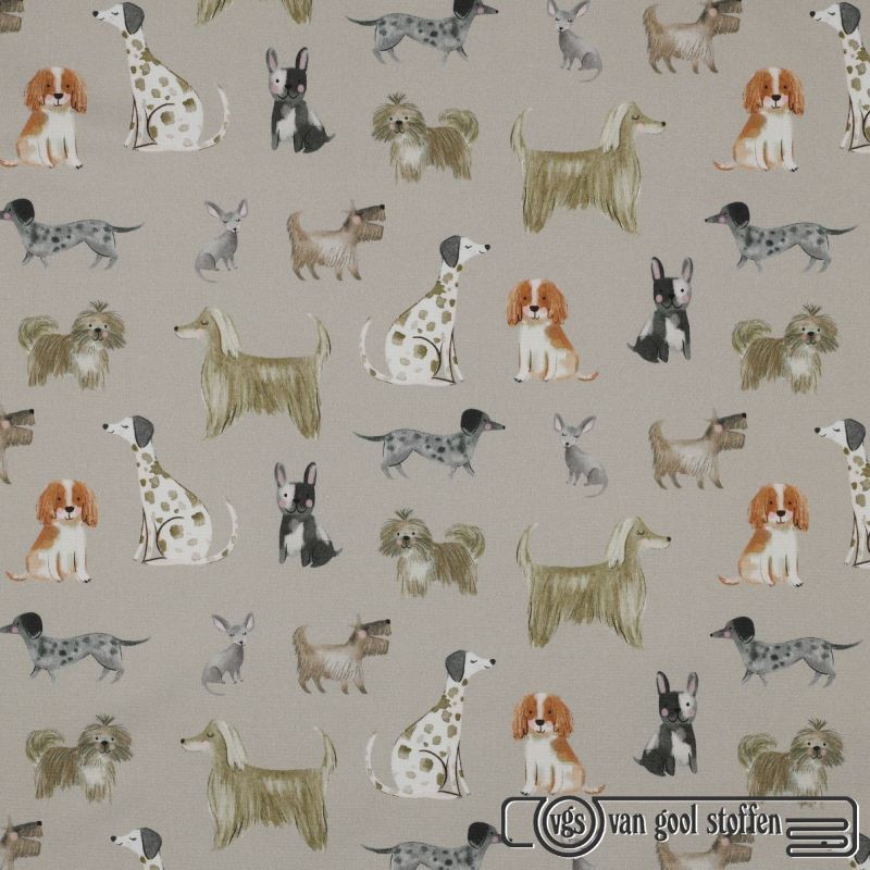 Poplin katoen digitaal print dieren in de auto taupe / grijs