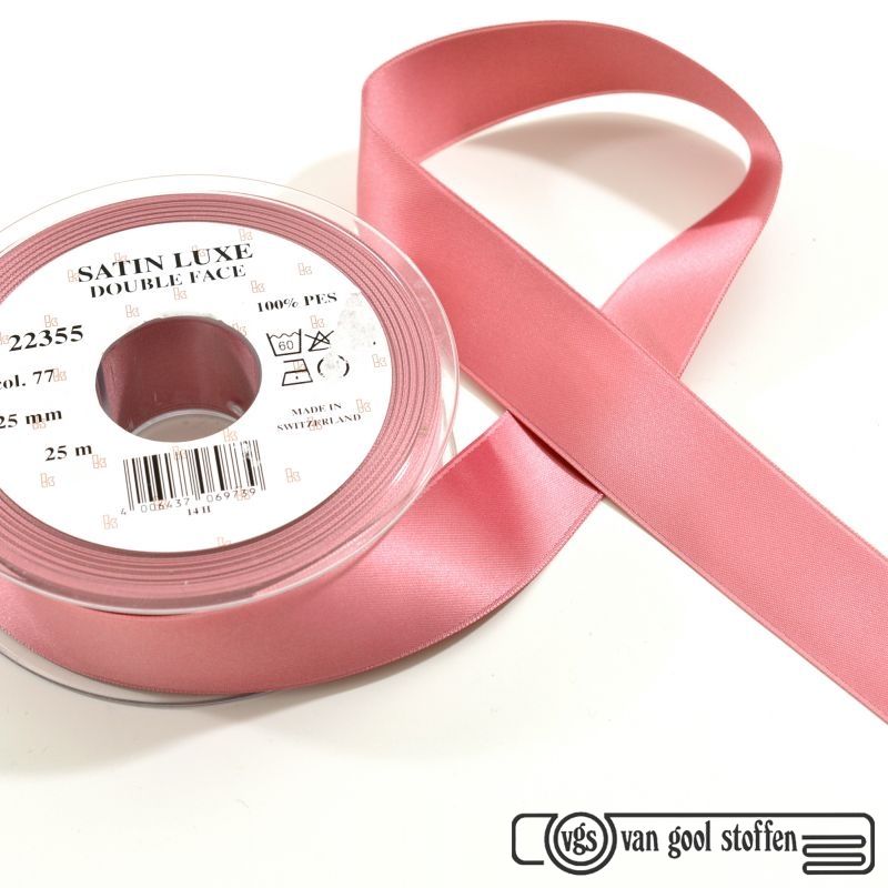 Satijn band satin de luxe 25mm col 77 oud rose rol 25mtr