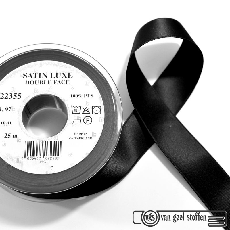 25mm Satijn band satin de luxe 25mm col 725 zwart