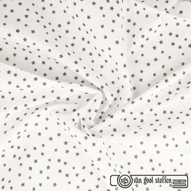 Katoen poplin mini stars/ sterren kleur 013 grijs wit