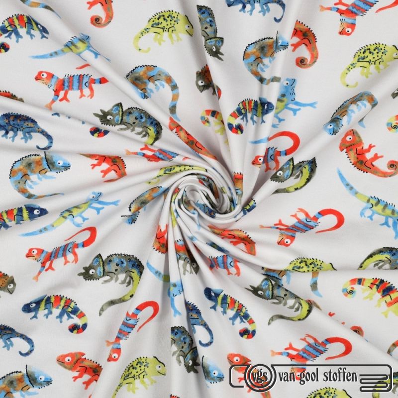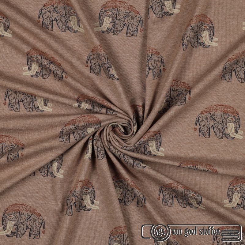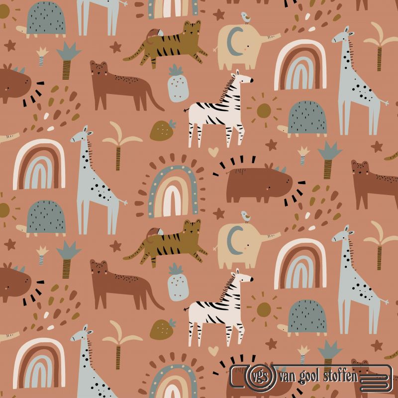 Tricot digitaal bedrukt safarie dieren dark apricot