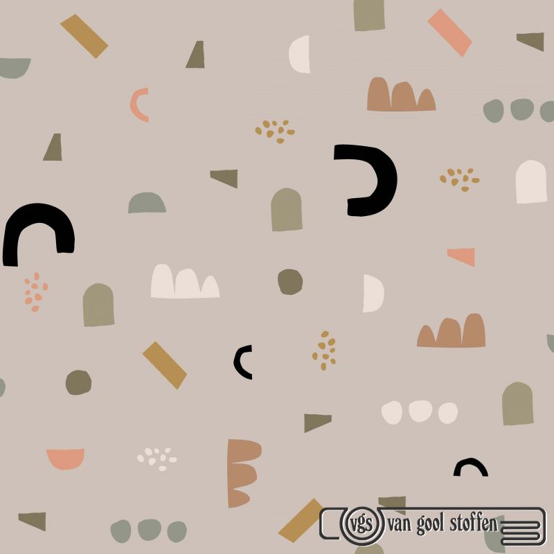 Tricot digitaal bedrukt safarie vormen dark apricot