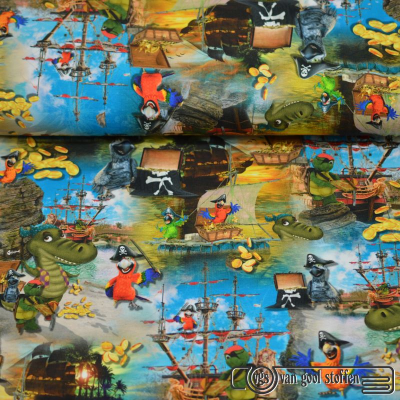 Tricot katoen digitaal piraten & Dino's