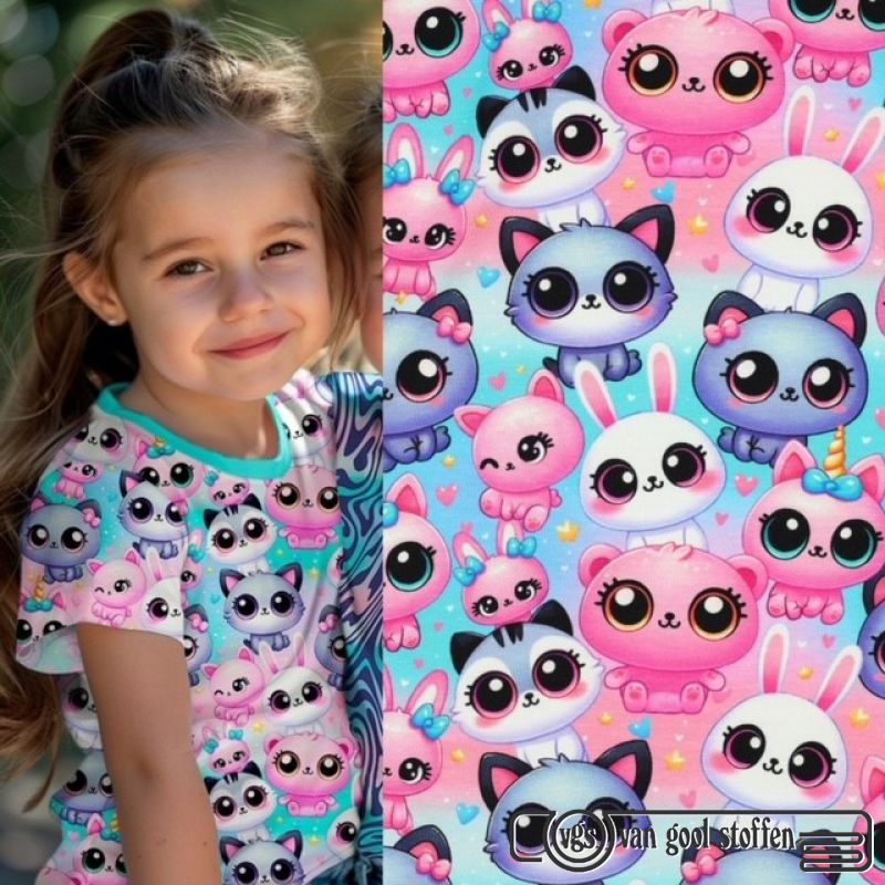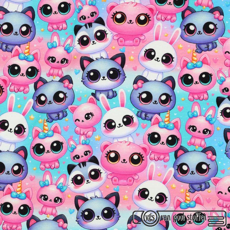 Tricot katoen digitaal cute animals