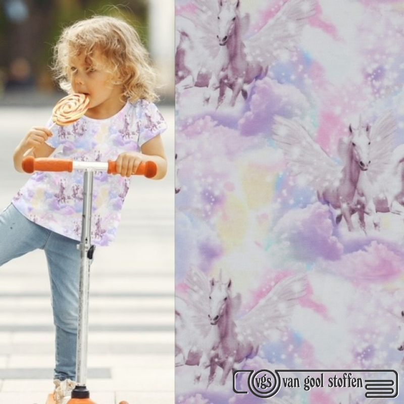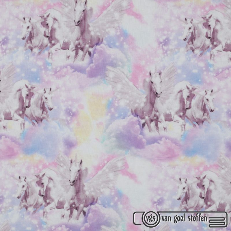 Tricot katoen digitaal unicorn clouds