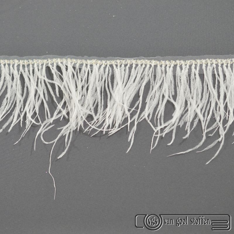 Struisvogel veren band met kraaltje ivory 12cm randgarnering