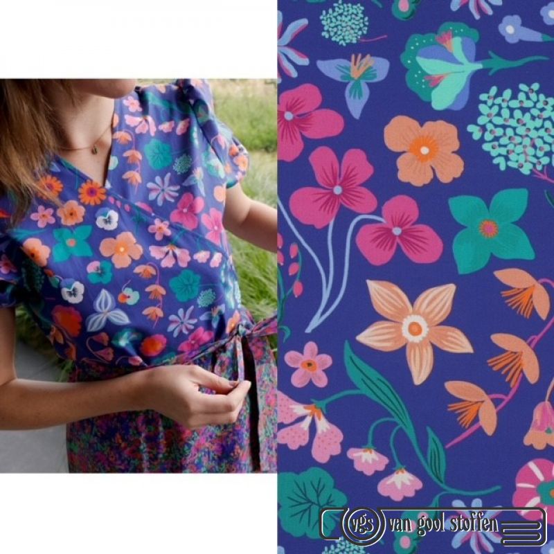 Coupon 120x140 viscose ecovero lenzing amira floral #nerida hansen donker blauw