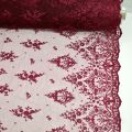 Exclusieve couture kant.Bewerkt met pareltjes en glas kraaltjes. Deze kant heeft een spiegelrand. De grote van de bloemen zijn +/- 20cm, de rand is 12 cm breed.