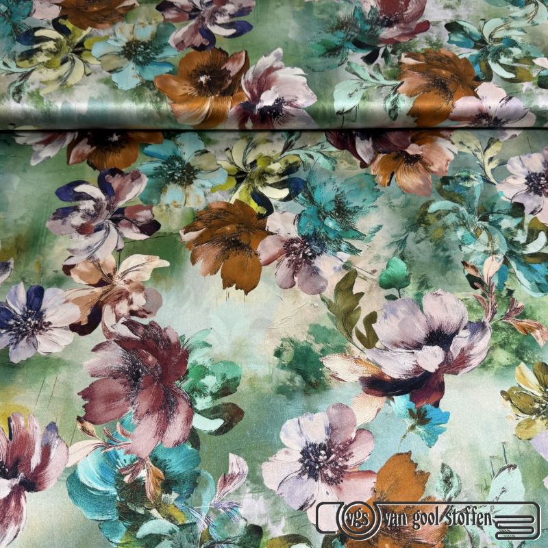 Ontdek pure luxe met deze exclusieve Italiaanse zijde — een verfijnde kwaliteit van 94% zijde en 6% lycra met een prachtige digitale print. Met een gewicht van slechts 100 g/m² en een breedte van 136 cm valt deze zijde soepel en elegant, perfect voor de meest stijlvolle creaties.
