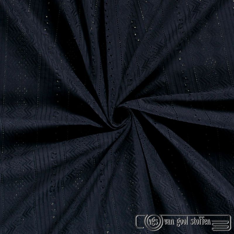 Broderie streep motief donker blauw