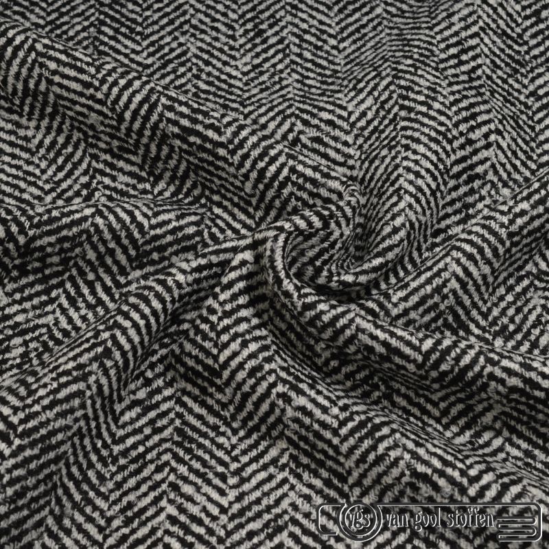 Wol tweed chevron exclusieve italiaans designer stof zwart
