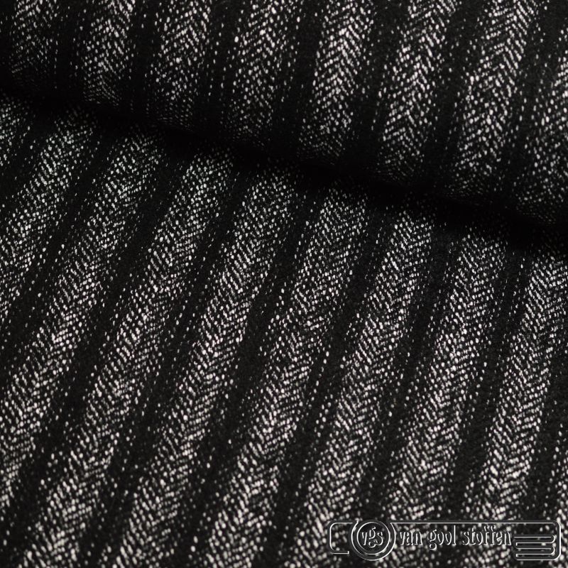 Wol tweed streep visgraat exclusieve italiaans designer stof zwart