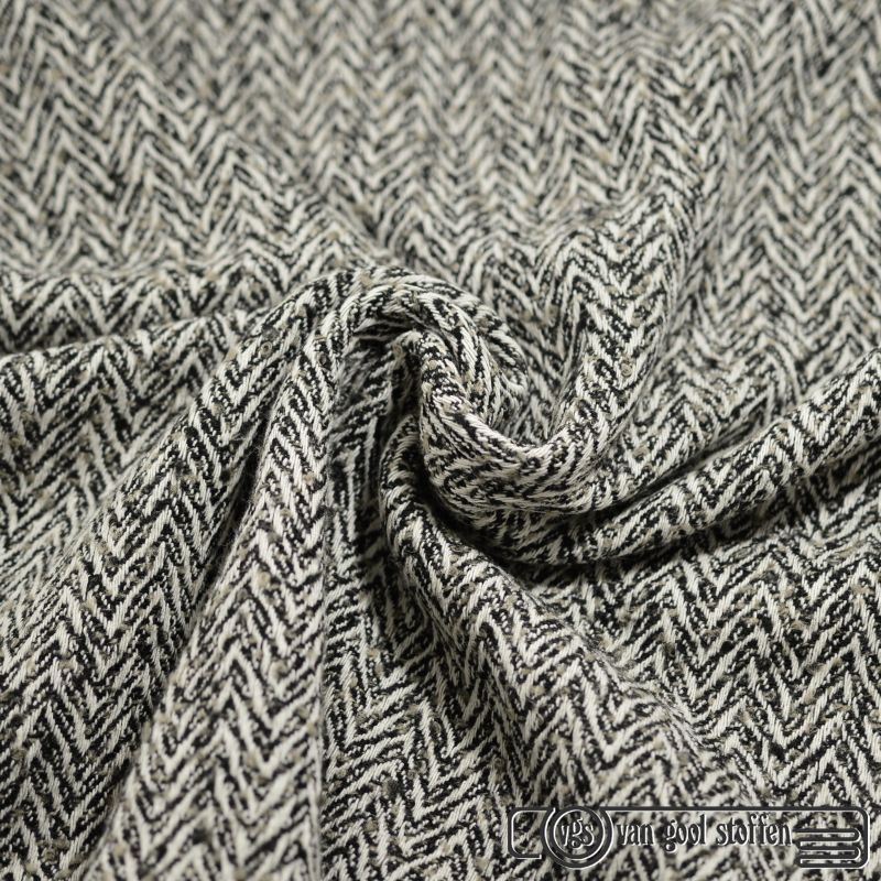 Tweed visgraat exclusieve italiaans designer stof zwart beige