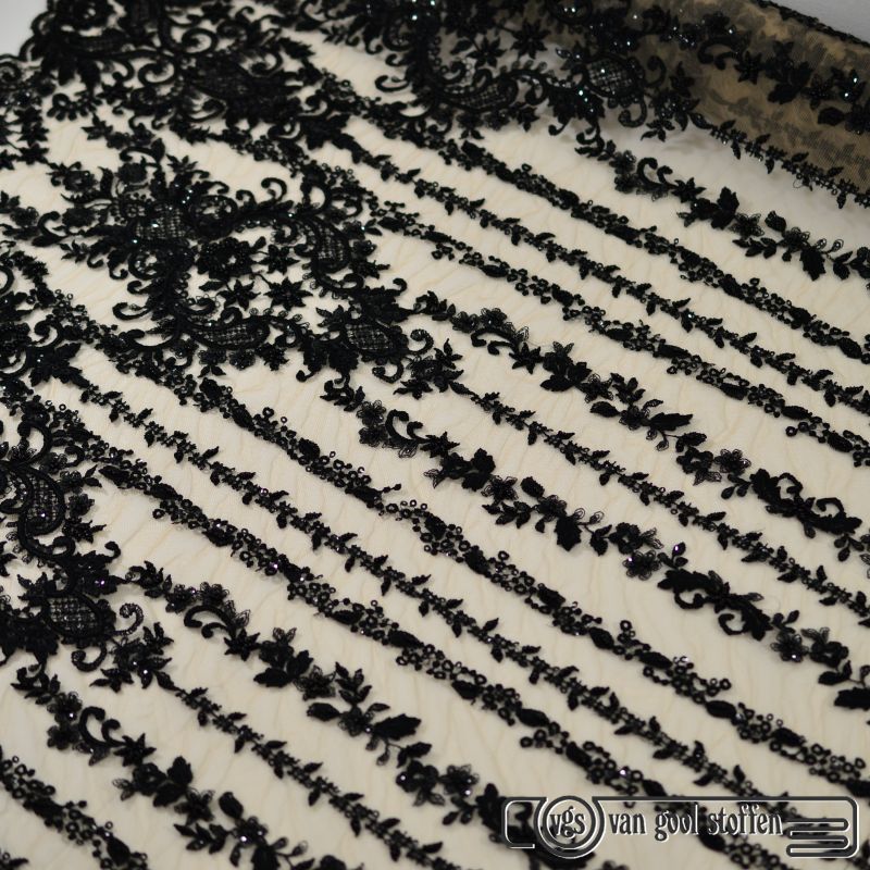 Exclusieve tule kant met bloemen zwart #haute couture collection gratacos