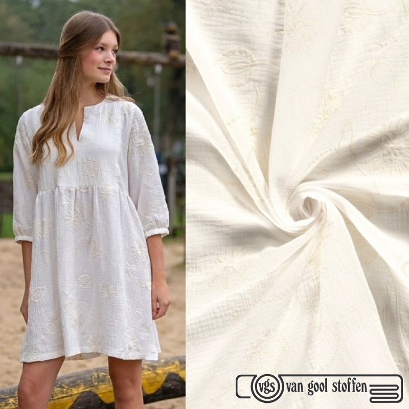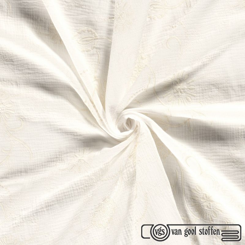 Mouseline /hydrofile katoen stof geborduurd met bloemen ivory # my image