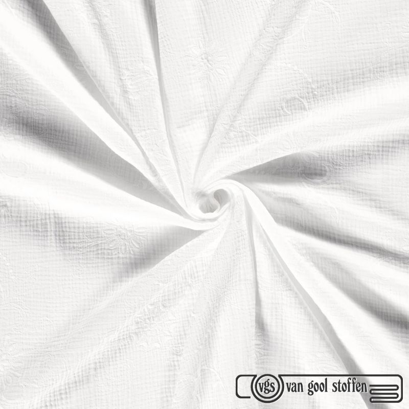 Mouseline /hydrofile katoen stof geborduurd met bloemen wit # my image