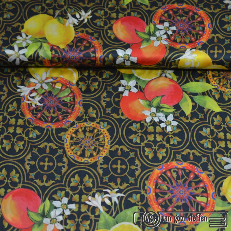 Viscose modal satijn abstract /retro lime groen print italiaans design