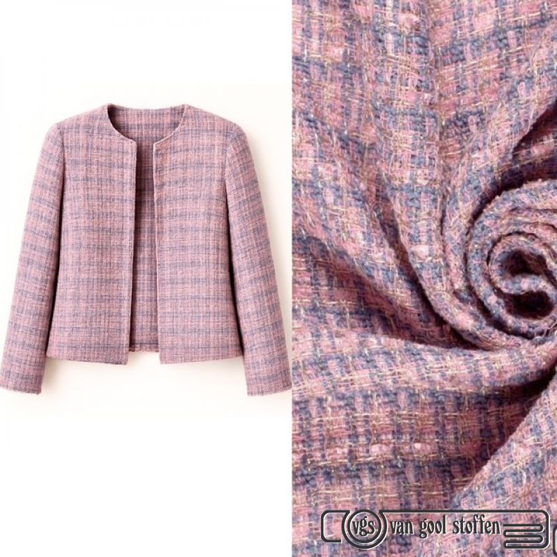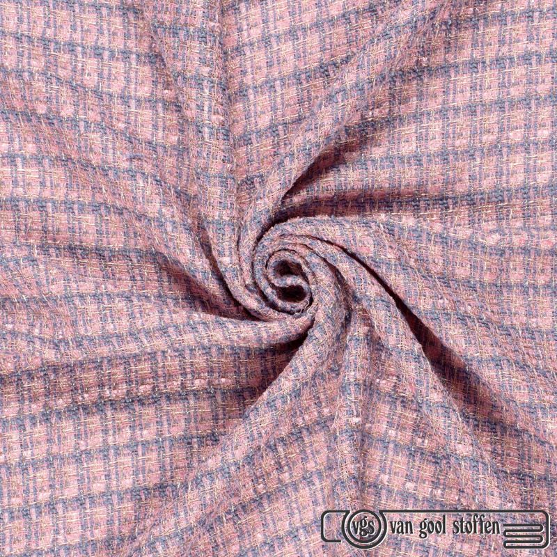 Grof geweven mantelpak stof / boucle rose blauw
