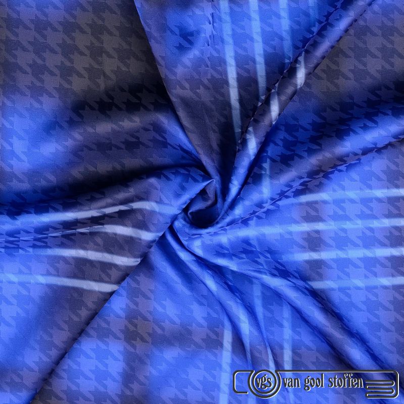 Stretch satijn jacquard ruit print digitaal kobalt blauw