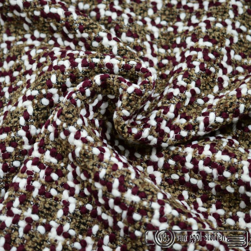 Exclusieve grof geweven mantelpak stof italiaans design beige ivory bordeaux