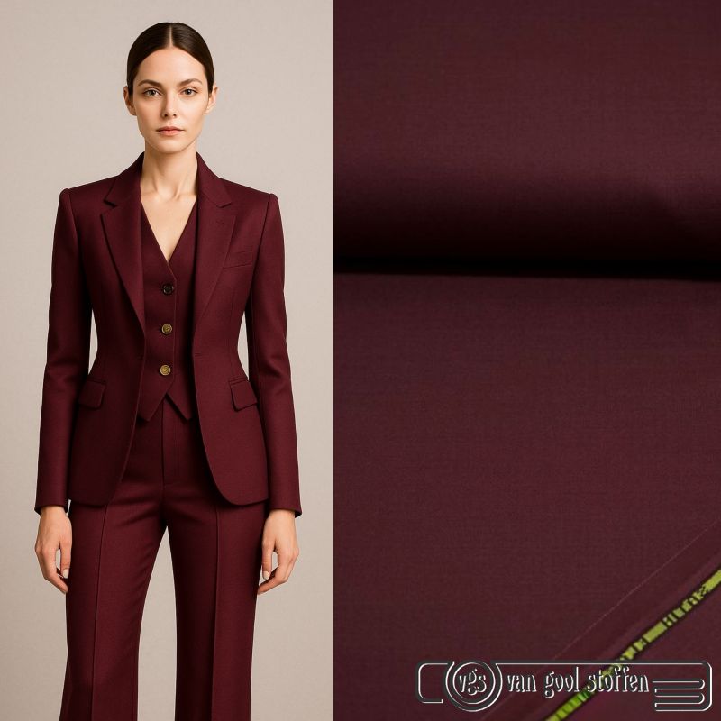 Stretch Wol double face satin Exclusieve Italiaanse stof kleur 6017 bordeaux rood