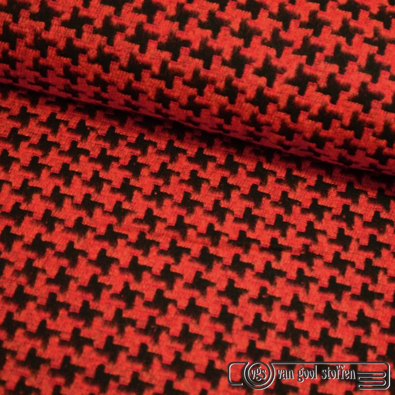 Exclusieve grof geweven stof italiaans design pied du poule ruit rood