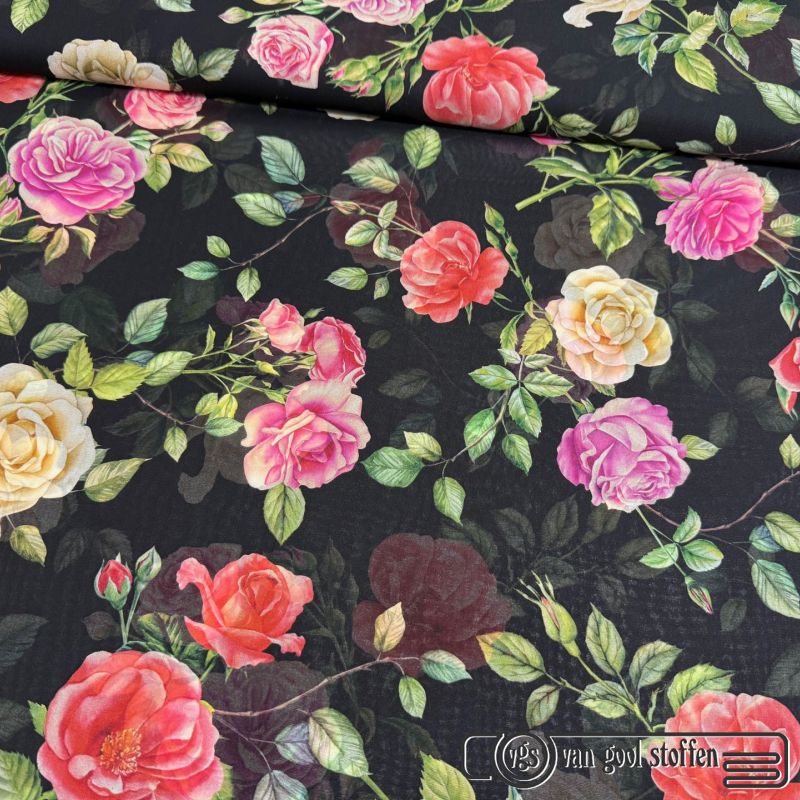 Zijde chiffon rozen & DG Italiaanse designer stof (deadstock)