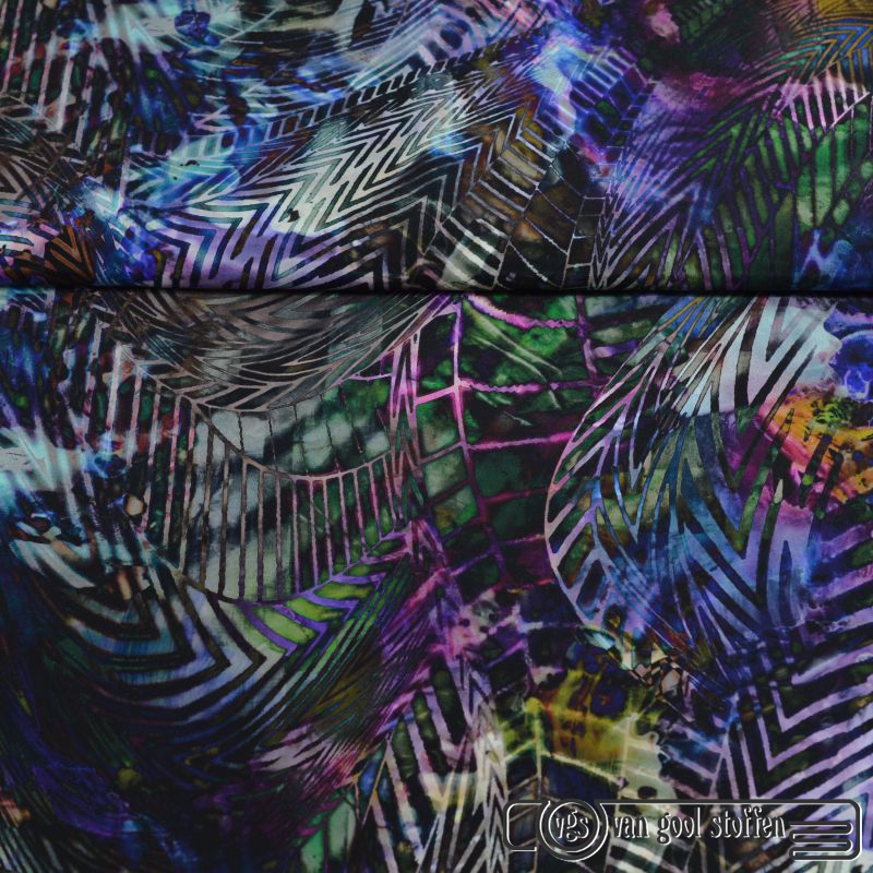 Exclusieve stretch zijde Italiaans design abstract visgraat zwart groen fuchsia