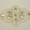 Aplicação nupcial com strass, miçangas e lantejoulas. Esta aplicação tem 13 cm de largura e 6 cm de altura.
