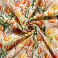 De stof bestaat uit 50% katoen en 50% polyester, wat zorgt voor een prettige combinatie van comfort, ademend vermogen en duurzaamheid. Met een gewicht van 220 gram per m² en een breedte van 135 cm is deze stof zeer geschikt voor zowel kleding als accessoires.