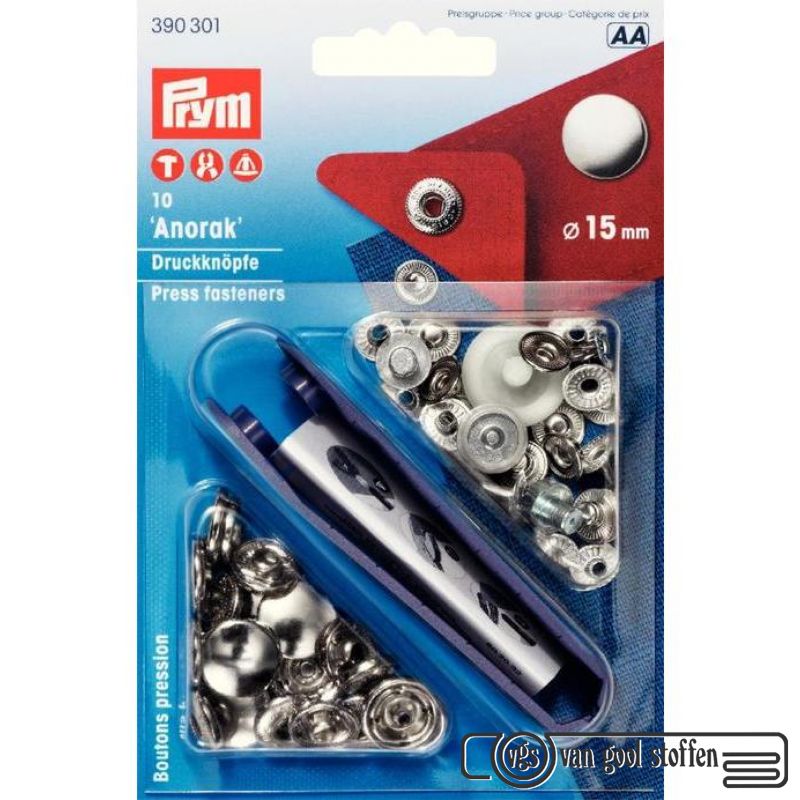 Prym drukkers 15mm anorak goud
